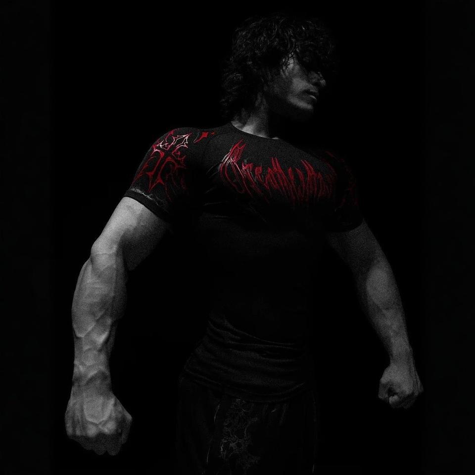 T-Shirt a Compressione Muscolare a Maniche Corte, Alta Elasticità, Maglia Fitness Aderente da Uomo con Motivo a Texture Muscolare