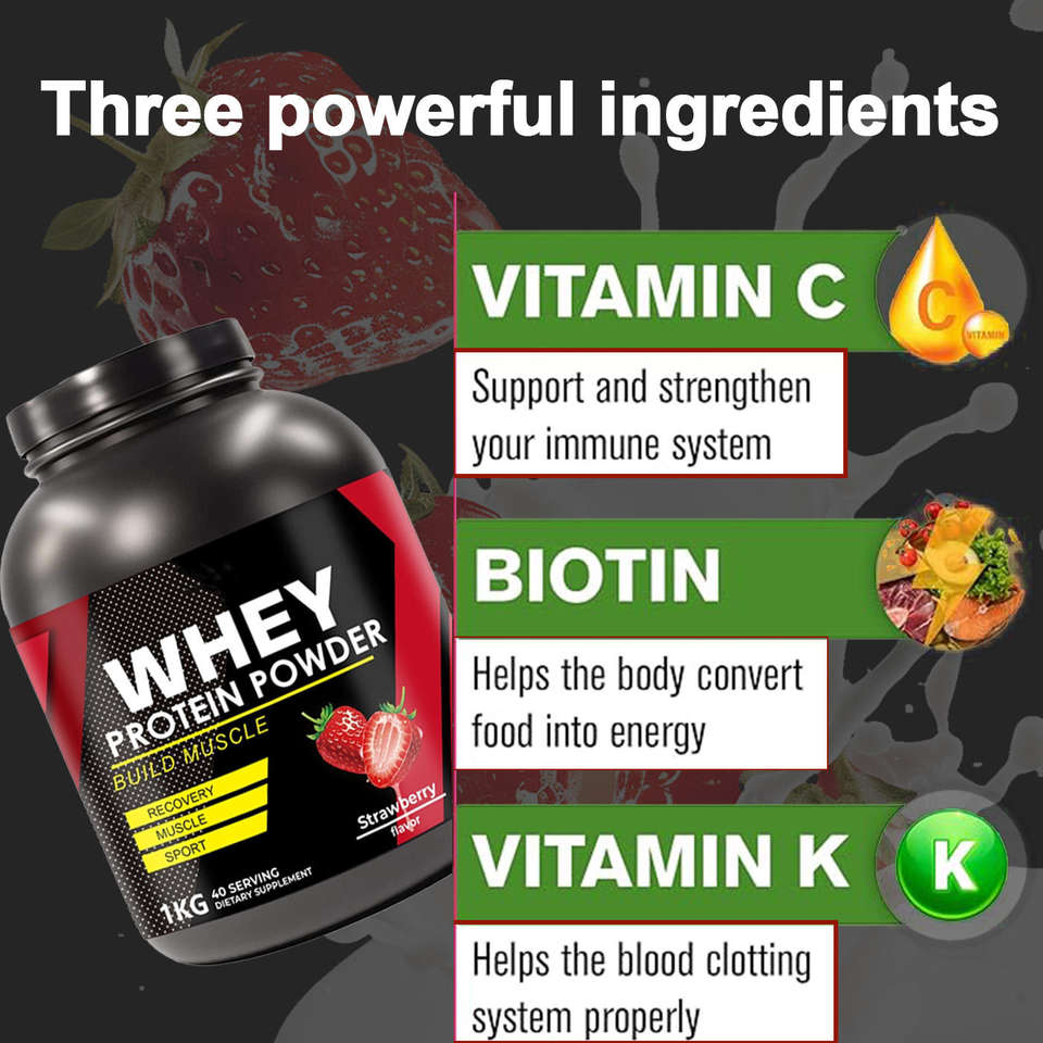 Proteine del Siero di Latte in Polvere Istantanea 1KG al Gusto Fragola per Supporto Muscolare e Recupero Post-Allenamento per Uomini e Donne Adulti