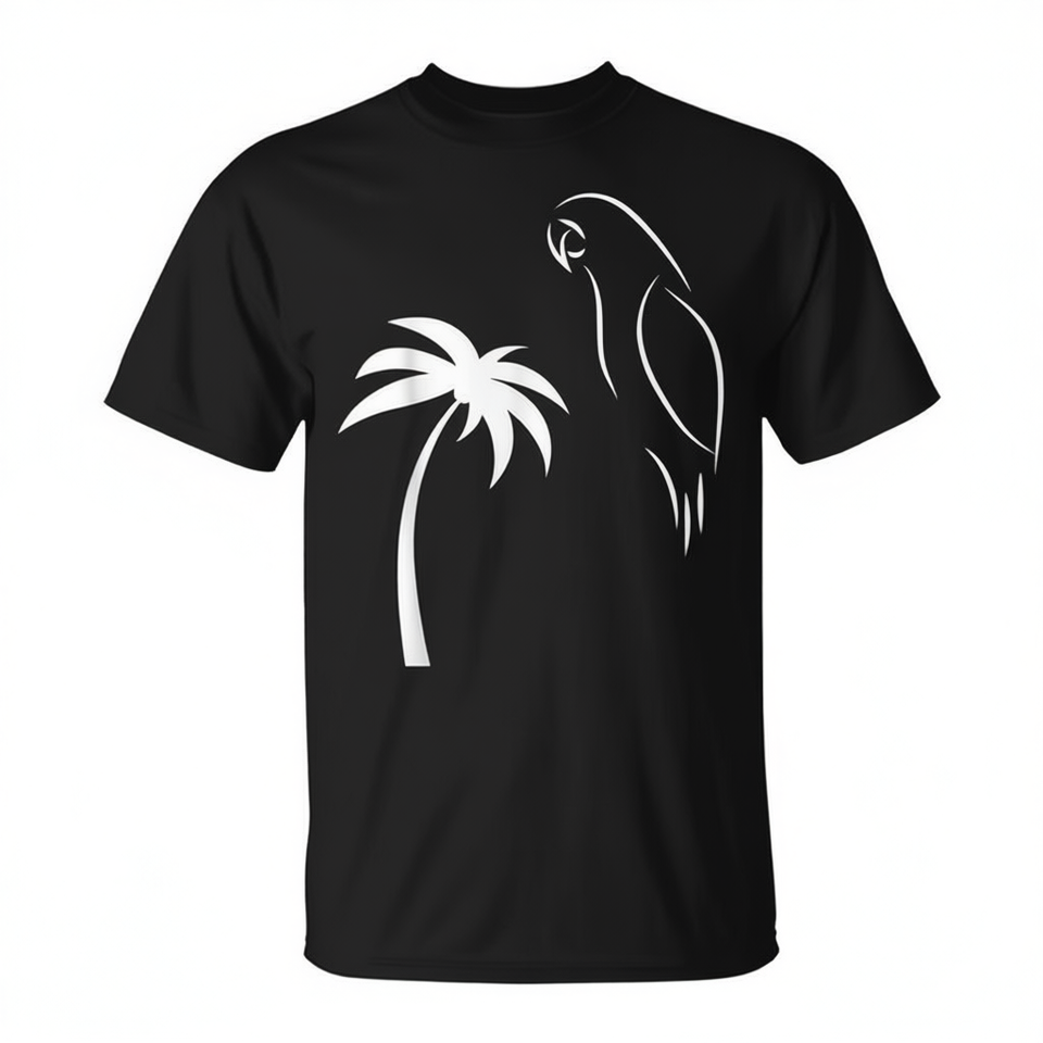 T-shirt commemorativa per gli amanti della musica, con pappagallo sull'albero di palma, per commemorazioni musicali e funerali