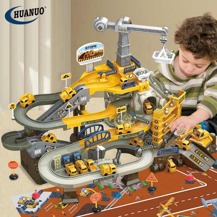 Music Parking Lot New Construction Race Tracks Engineering Alloy Car Go Uphill Slot Toy Electric Tracking Set Toys for Kids