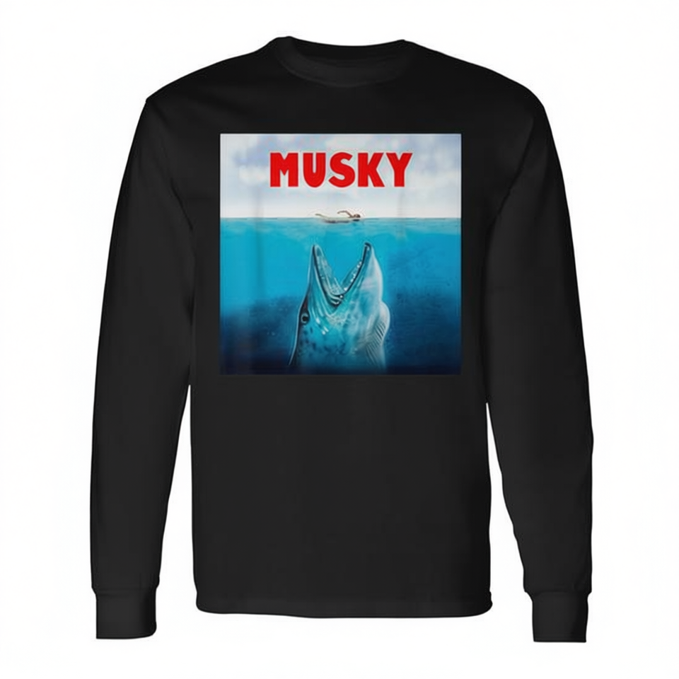 T-shirt a maniche lunghe a tema Musky Fishing Great White