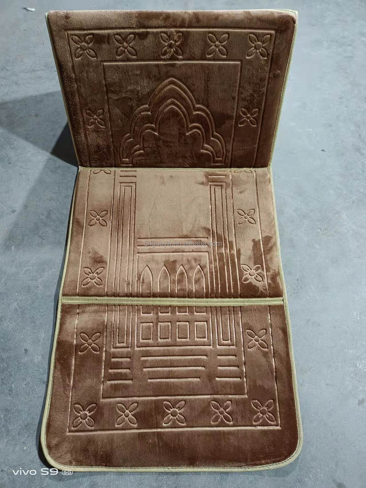 Tappeto da Preghiera Musulmano Pieghevole all'Ingrosso con Tasca Tappeto da Preghiera Islamico Tinta Unita Sejadah con Schienale