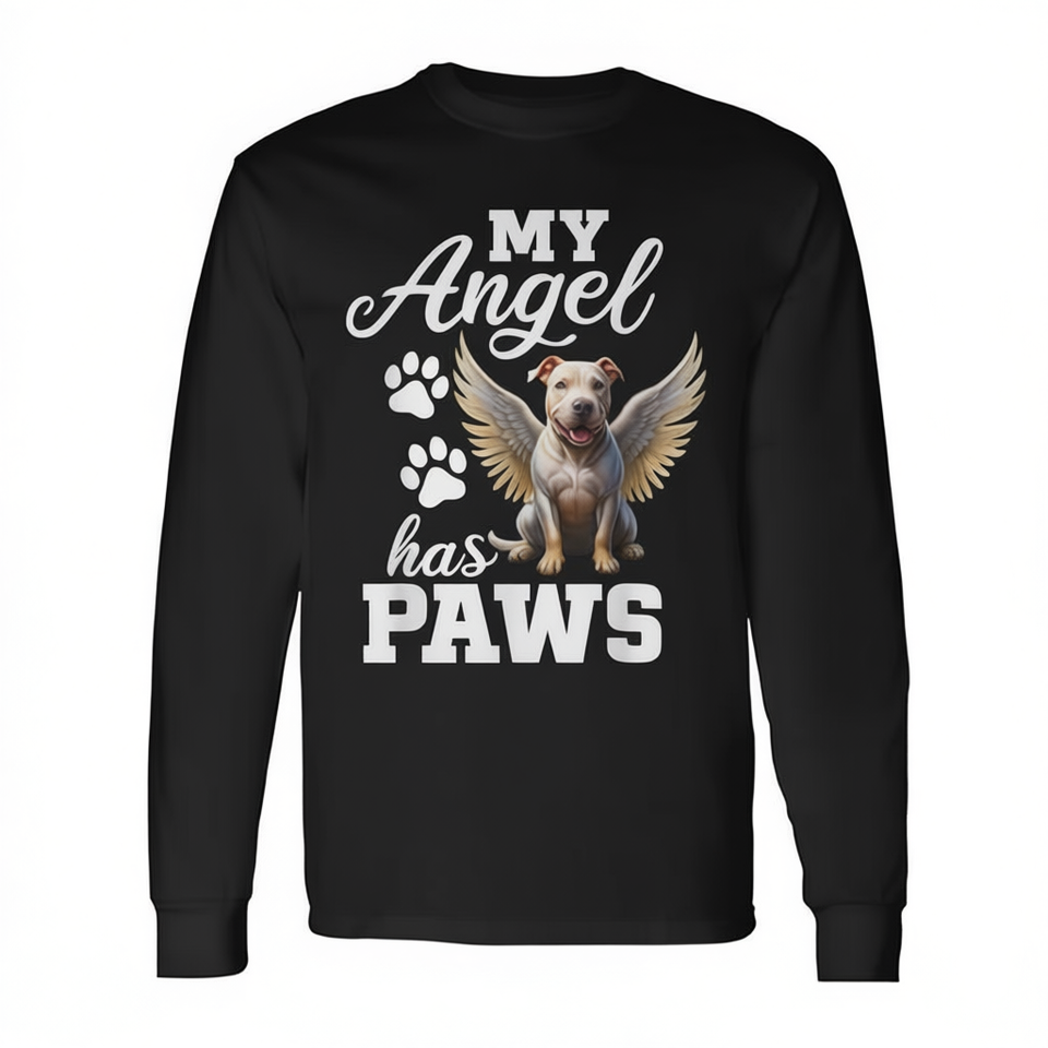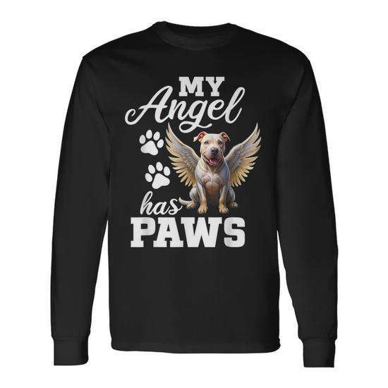 T-shirt a maniche lunghe con ali d'angelo per cani Pitbull, stampa digitale, girocollo, unisex, per adulti - Il mio angelo ha zampe