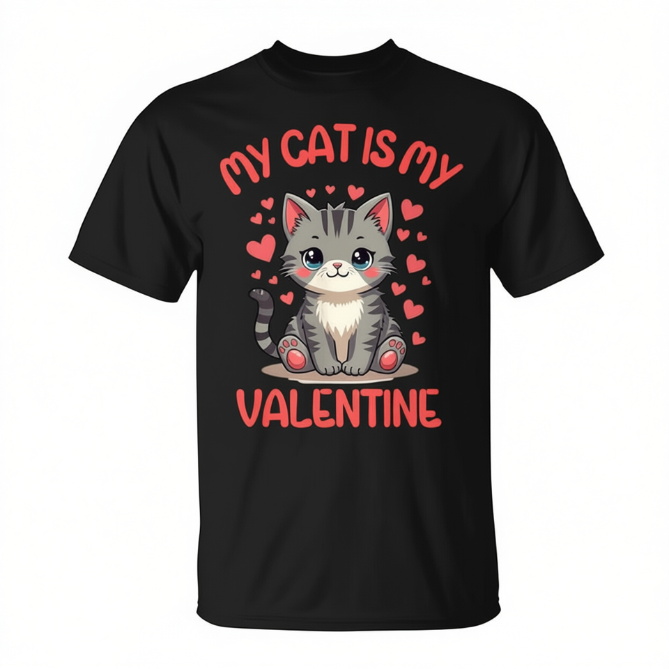 T-Shirt 'Il Mio Gatto È il Mio San Valentino' Manica Corta Girocollo Unisex per Adulti Stampa Digitale Promozionale
