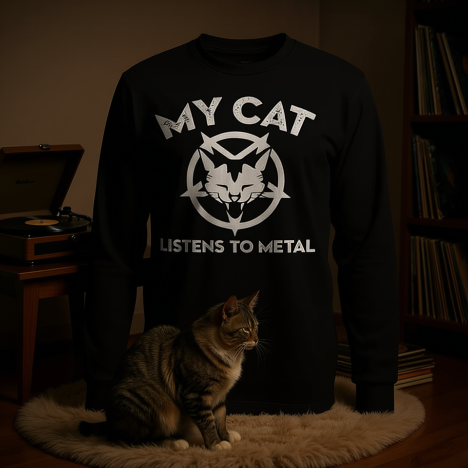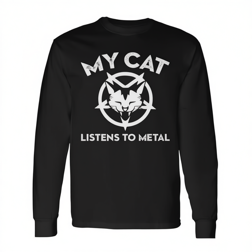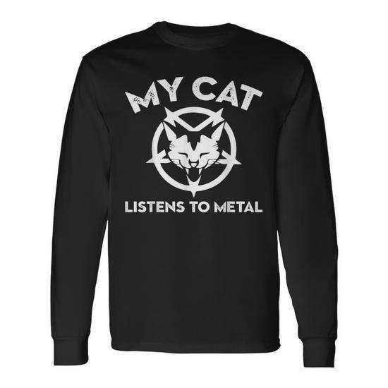 Maglietta a maniche lunghe My Cat Listens To Metal, nera, taglia unisex per adulti