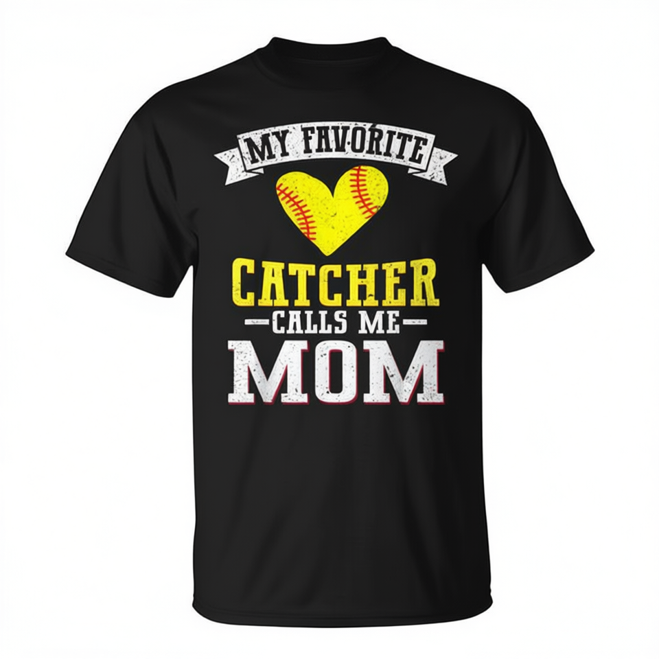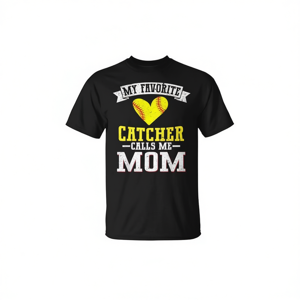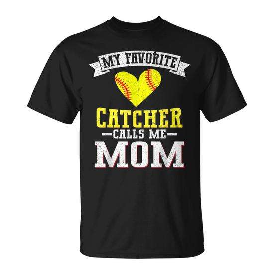 Il mio t-shirt da softball preferito con scritta 'Catcher Calls Me Mom' con scollo rotondo e maniche corte per adulti, femminile, sport e giochi