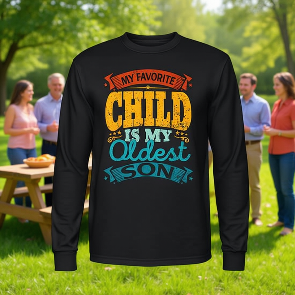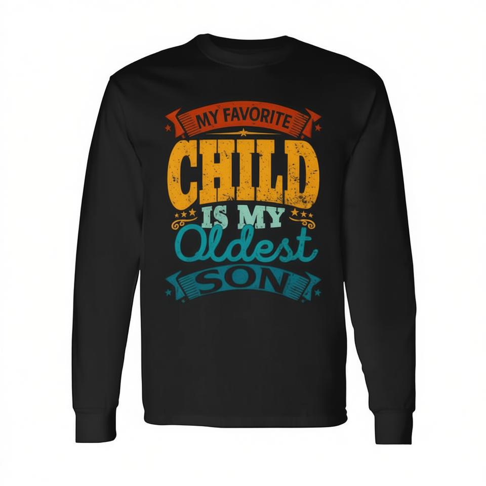 Il mio figlio preferito è il mio figlio più grande, maglietta vintage a maniche lunghe, girocollo unisex per adulti, stampa serigrafica, festa di riunione di famiglia