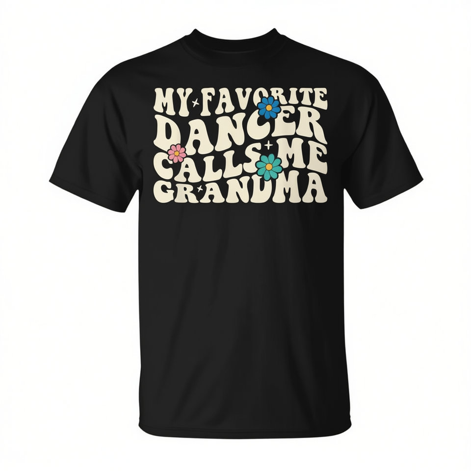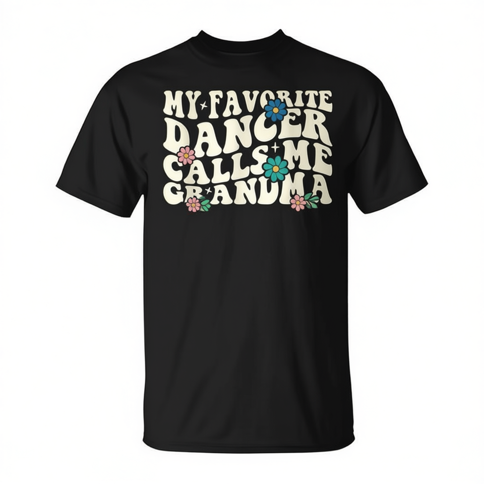 My Favorite Dancer Calls Me Grandma T-Shirt Women's Black Crew Neck Short Sleeve Silk Screen Printing