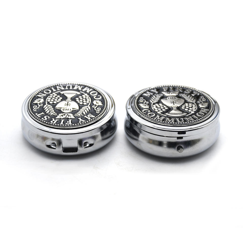 Scatola per Rosario Prima Comunione, Confezione Regalo in Metallo per Rosario, Scatola Artistica Rotonda per Gioielli e Collane