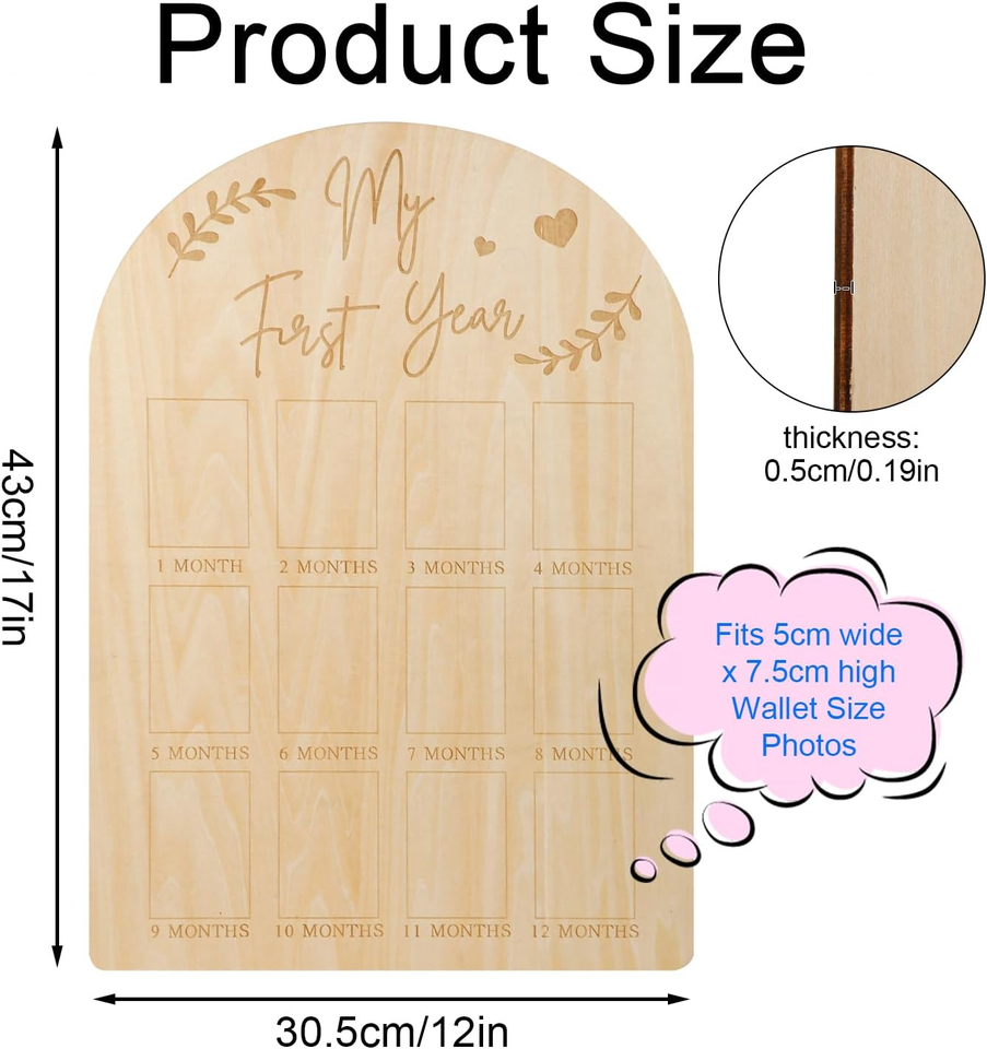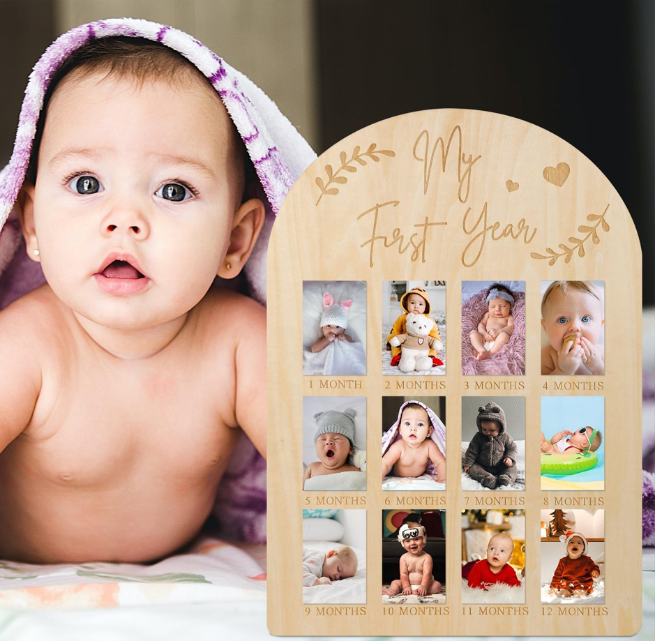 Cornice in Legno per Foto del Primo Anno, 12 Mesi, Cornice Ricordo per Foto del Bambino, Cornice per Foto Milestone, Regalo per Baby Shower e Nuove Mamme