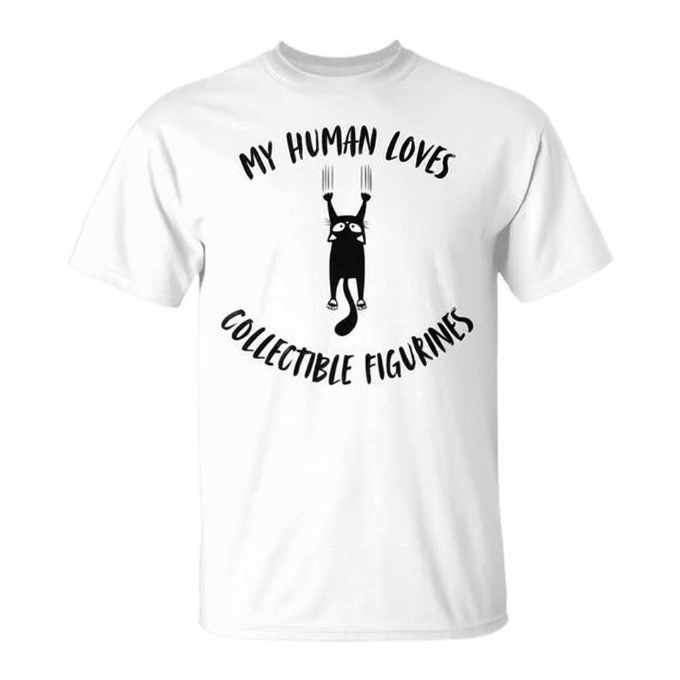 Maglietta per appassionati di gatti: Il mio padrone umano adora collezionare figurine