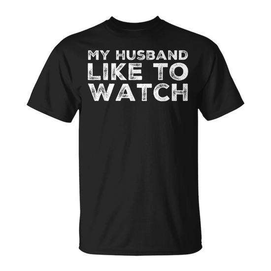 Il mio marito ama guardare la maglietta con stampa serigrafica, unisex, a maniche corte, girocollo, per adulti