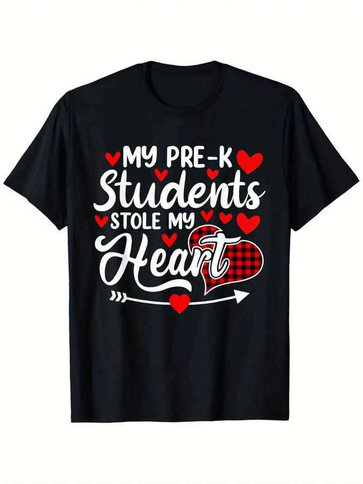 My Pre K Students Stole My Heart Teacher T Shirt Black Short Sleeve Cotton Valentine Gift For Educators Unisex Crew Neck