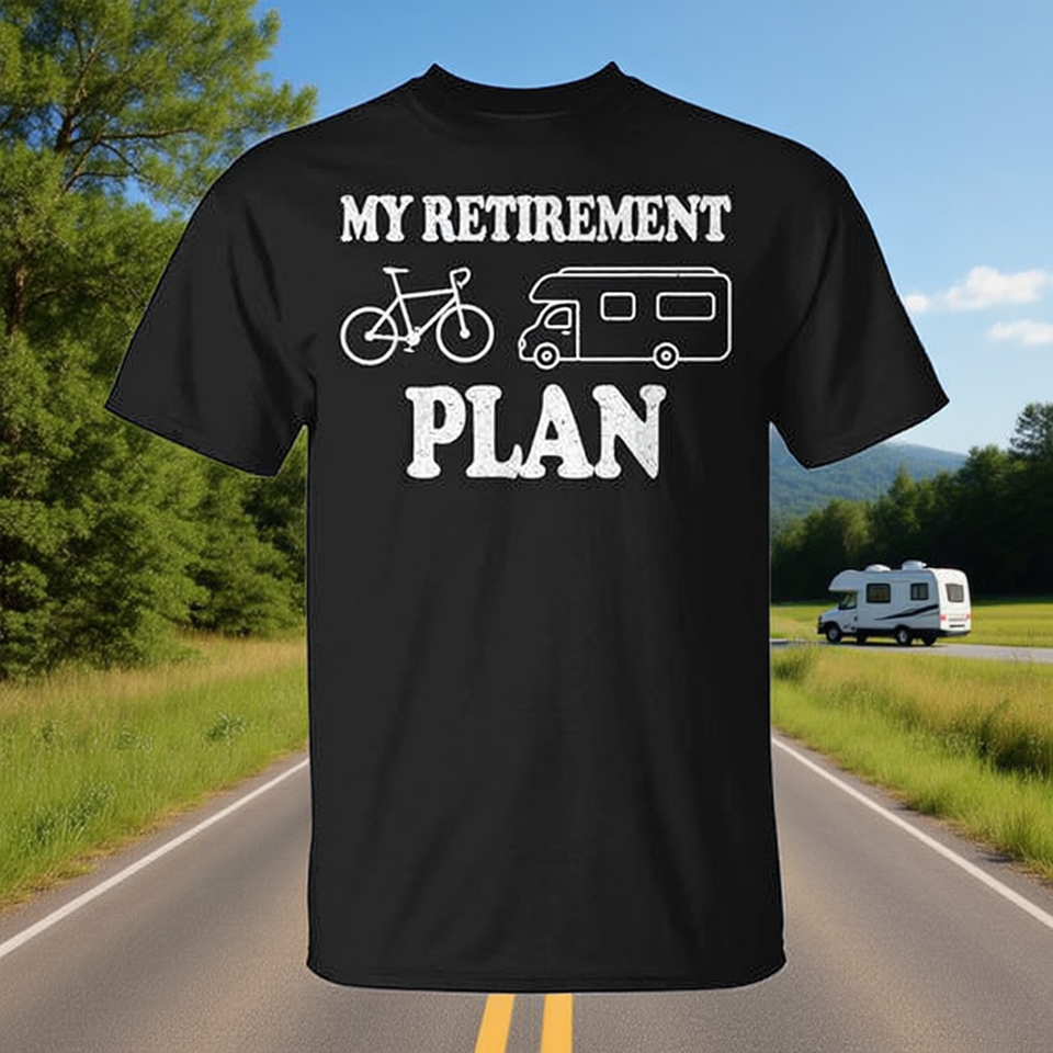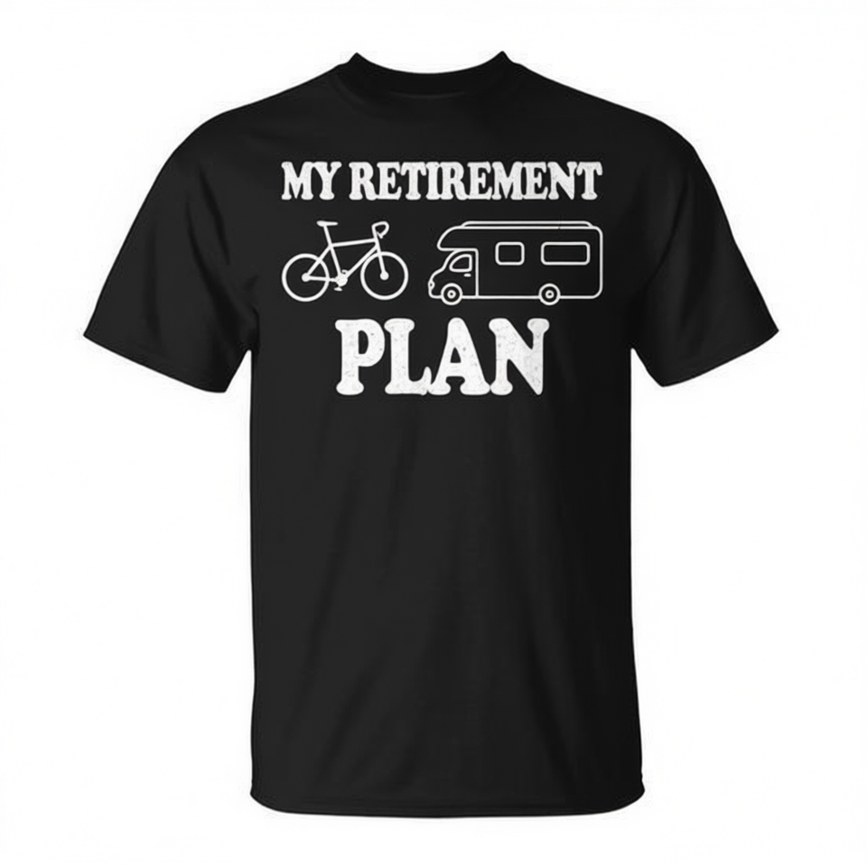 My Retirement Plan Bicycle Motor Home Life T-Shirt Adult Unisex Short Sleeve Crew Neck Silk Screen Printing