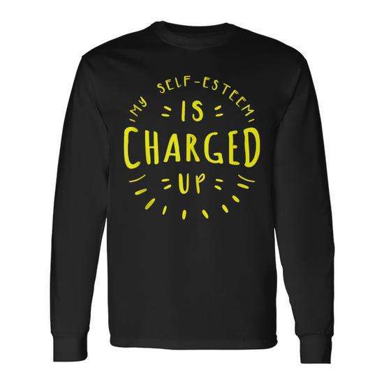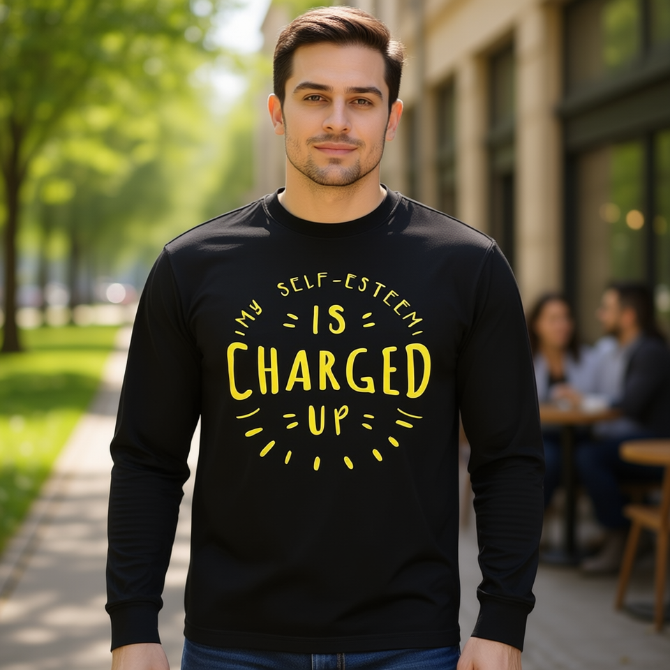 Maglietta a Maniche Lunghe Promozionale con Scritta 'Il Mio Autostima è Caricato'