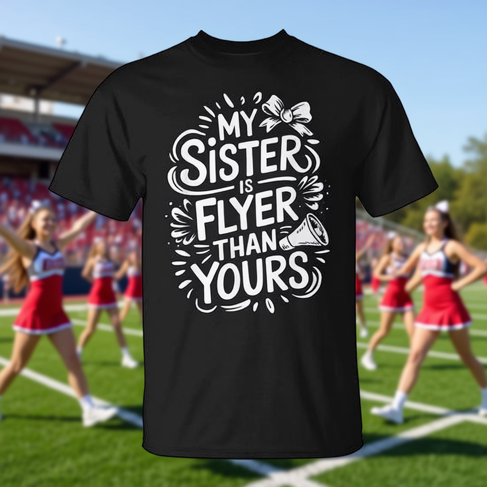 Maglietta Promozionale 'My Sister Is Flyer Than Yours' per Sorelle Cheerleader