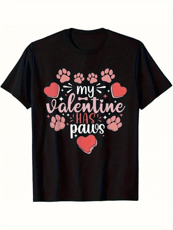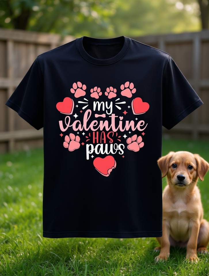 My Valentine Has Paws T-Shirt For Dog Lovers Cute Paw Print Design Soft Heavyweight 100% Cotton Valentines Day Gift