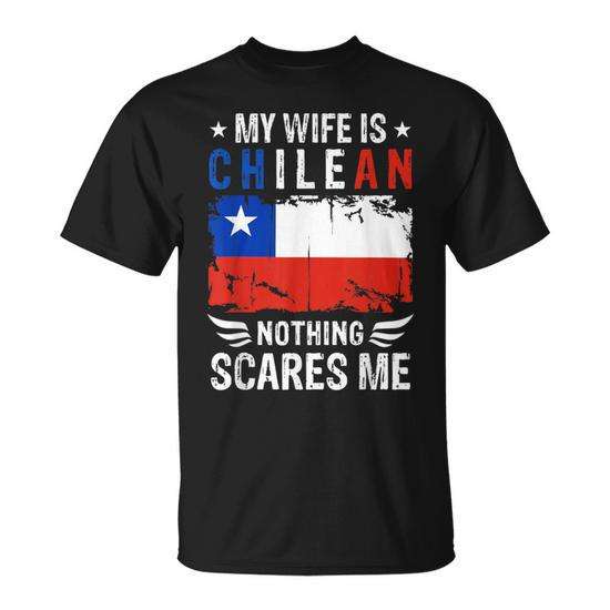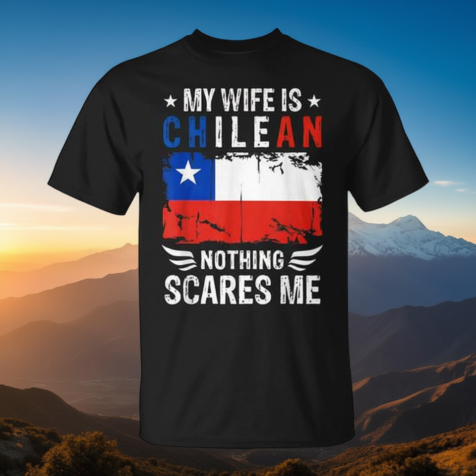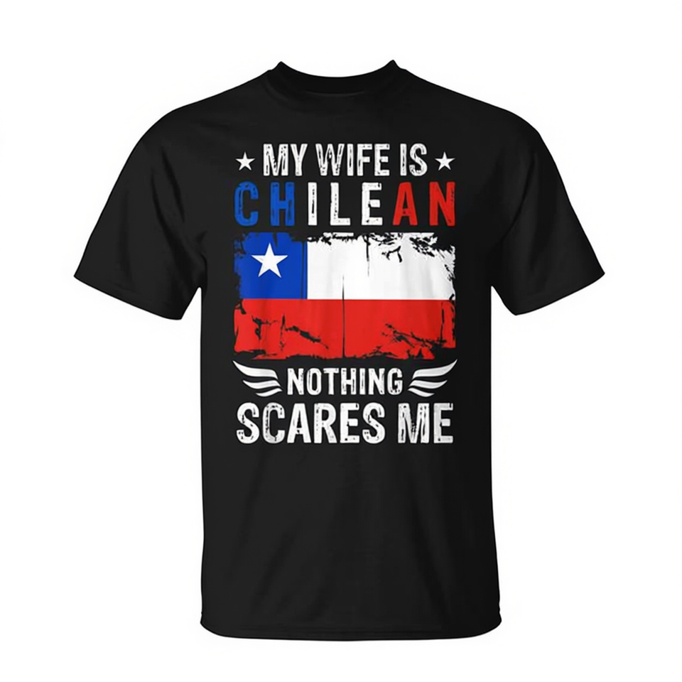 La mia moglie è cilena, niente mi spaventa, maglietta con bandiera cilena