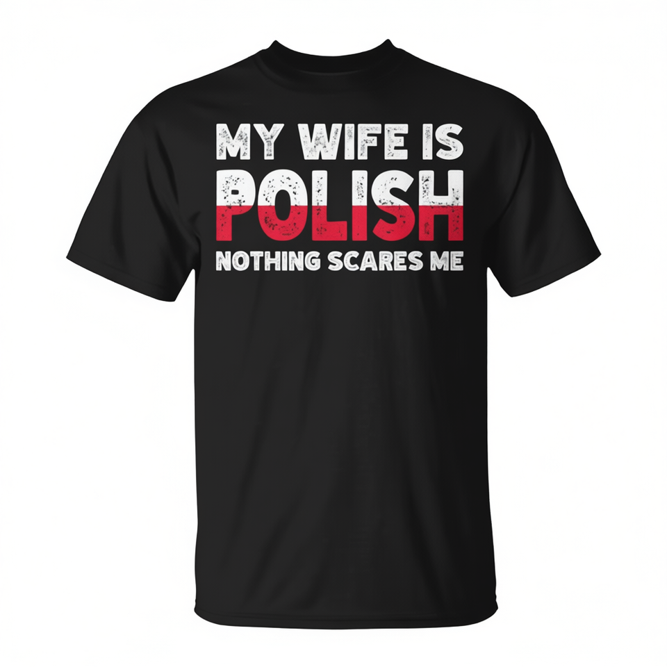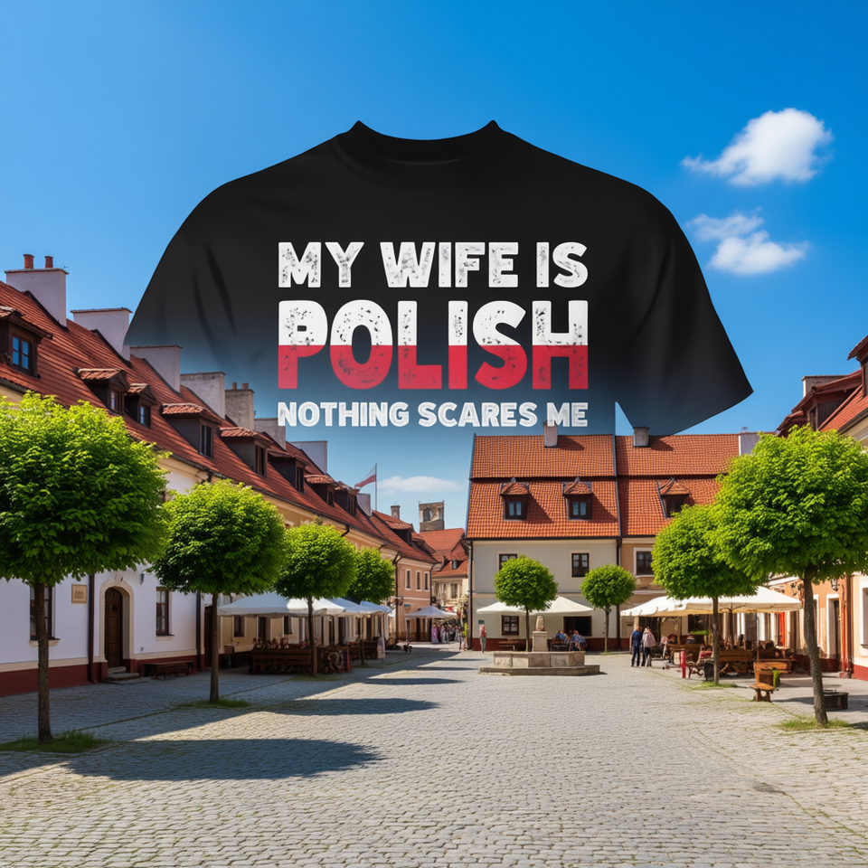 La mia moglie è polacca, niente mi spaventa, maglietta con l'emblema della polacca tradizione.