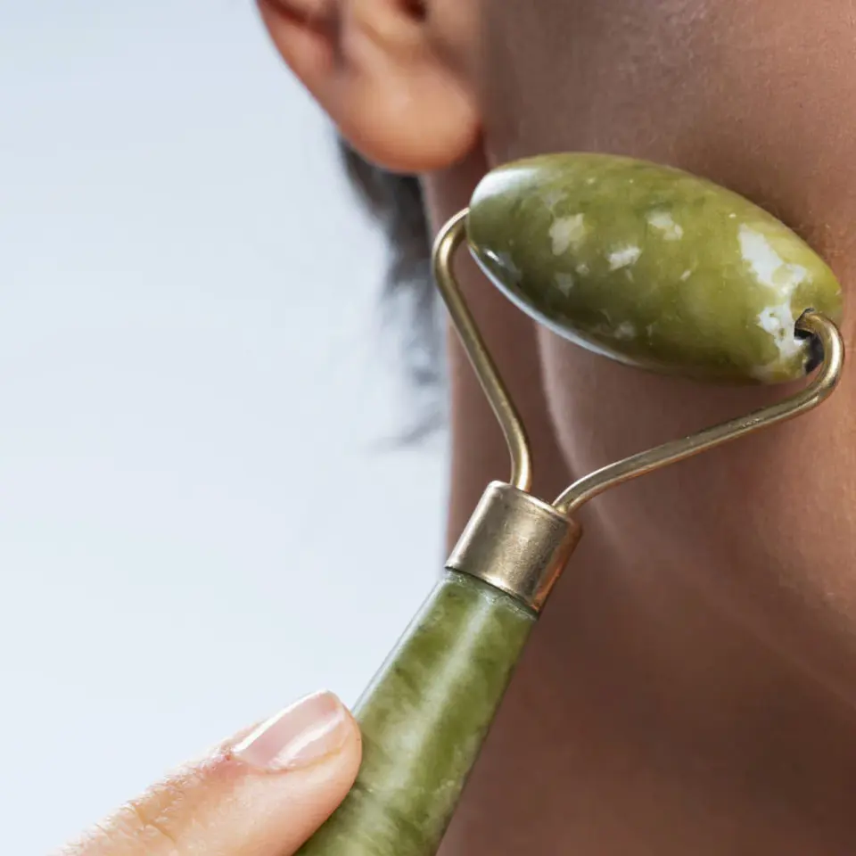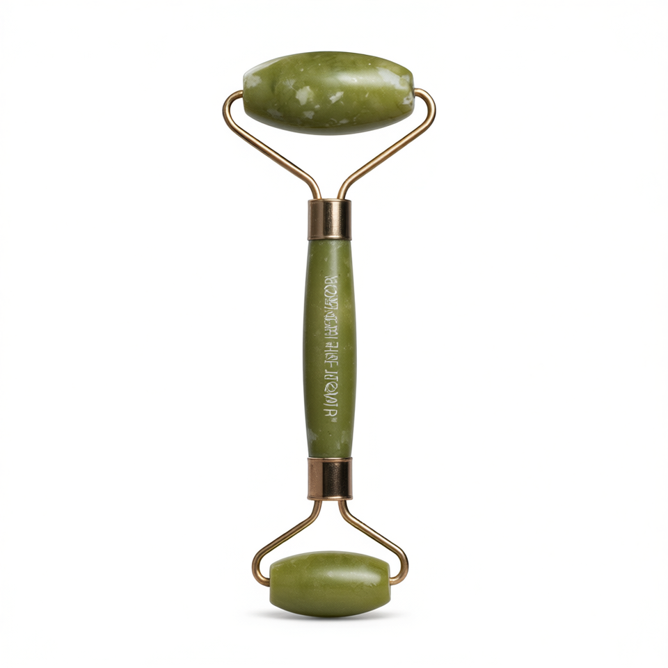 Rullo di giada Myrva a doppia estremità per massaggio viso e cura della pelle