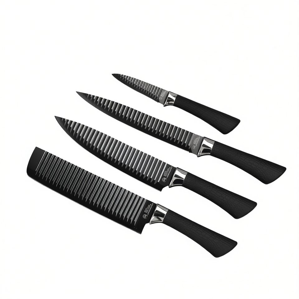 Set di coltelli Myrva 4 pezzi in acciaio inossidabile con lama seghettata e manico nero per cucina