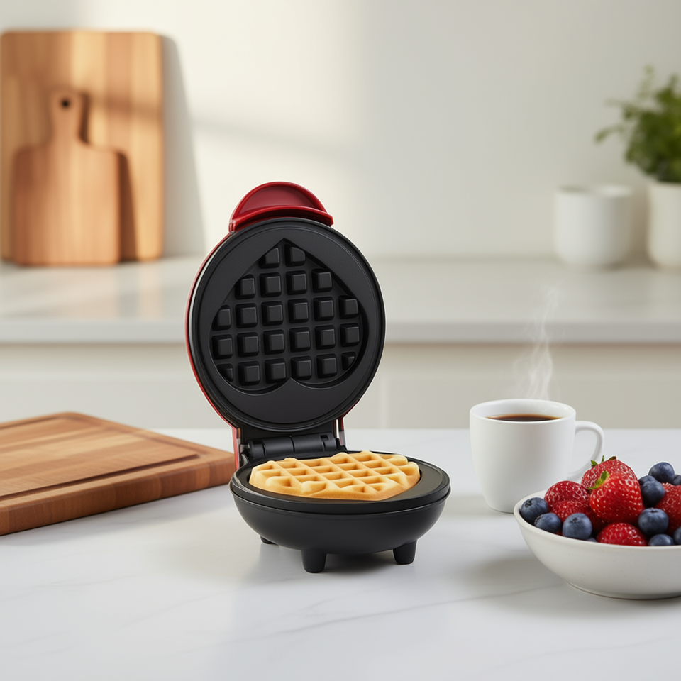 Myrva Mini Heart Shaped Waffle Maker Non Stick Plates Cool Touch Exterior Electric Mechanical Control Household Use