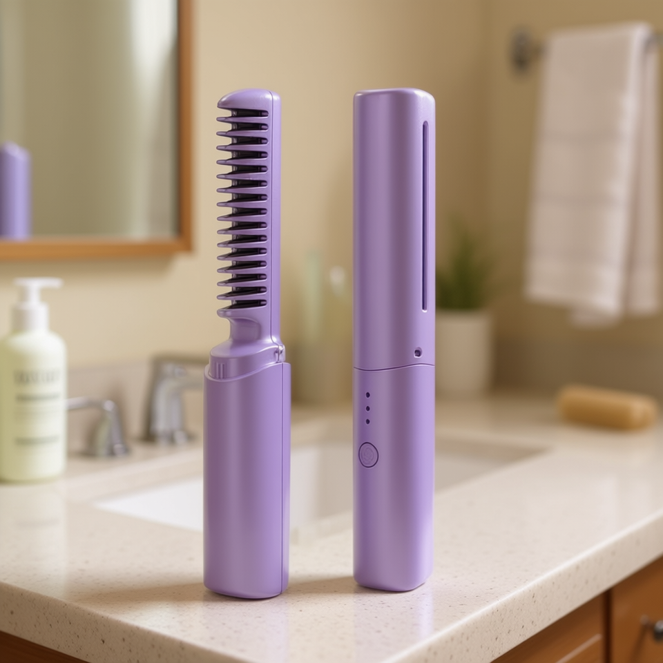 Myrva Pettine Lisciante Portatile Senza Fili con Riscaldamento PTC e Denti in Acciaio Inossidabile, Strumento per lo Styling dei Capelli