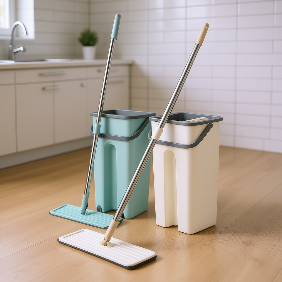 Set Mop Quadrato Myrva con Secchio, Strizzatore Automatico, Mop in Microfibra per Pavimenti, Manico Telescopico in Acciaio Inox, Testa Rettangolare 501-700Ml