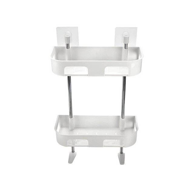 Mensola da bagno a due livelli Myrva, organizer da parete in plastica salvaspazio per accessori da bagno