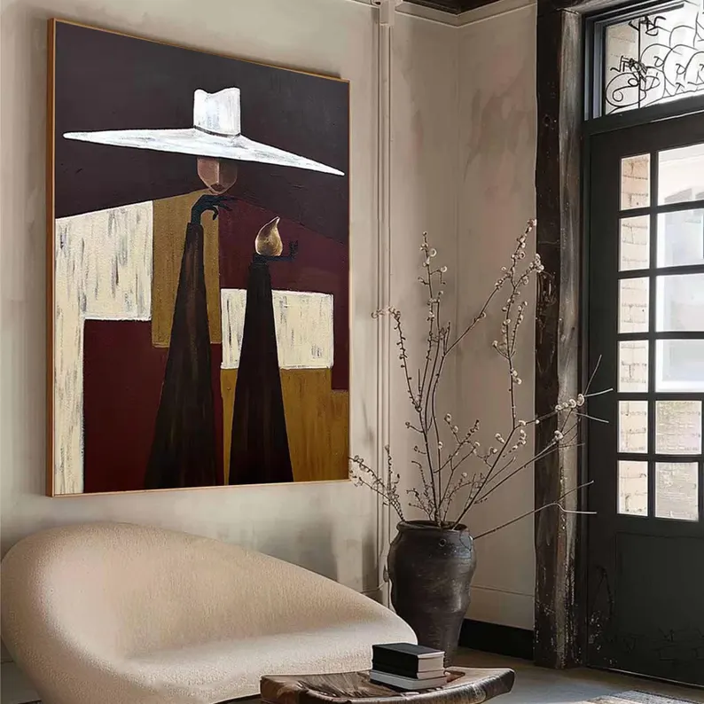 Mysterious Figure Abstract Painting Large Modern Hand-made Acrylic Wall Art Man Hat Canvas Eclectic Decor Contemporary Bedroom