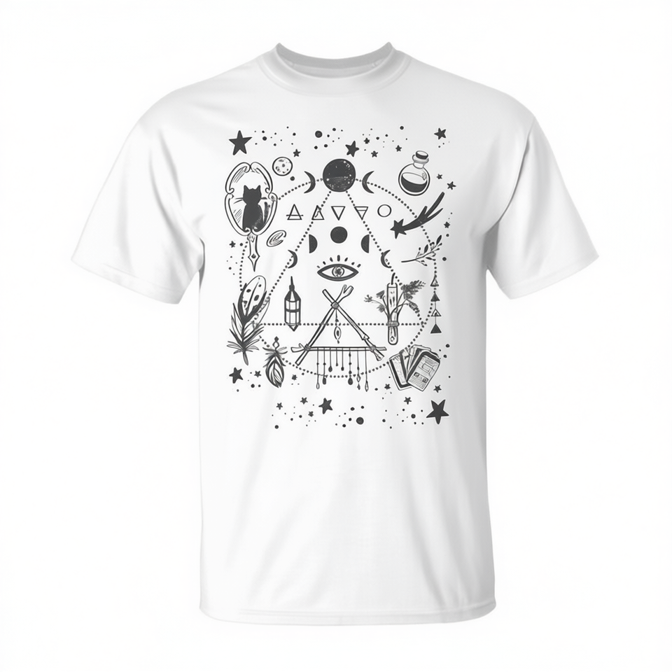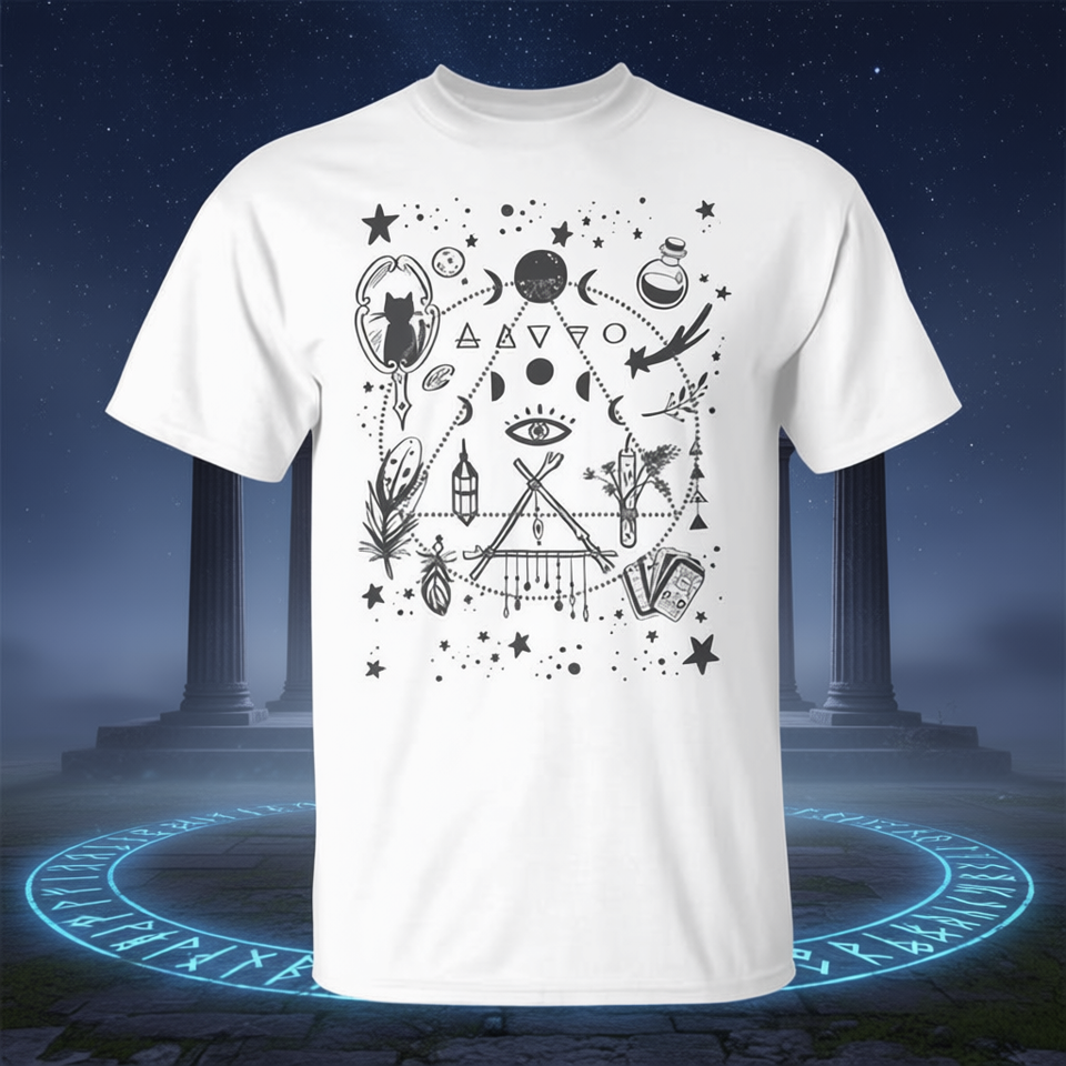 T-shirt premium con simboli mistici a triangolo, unisex, taglia media per adulti