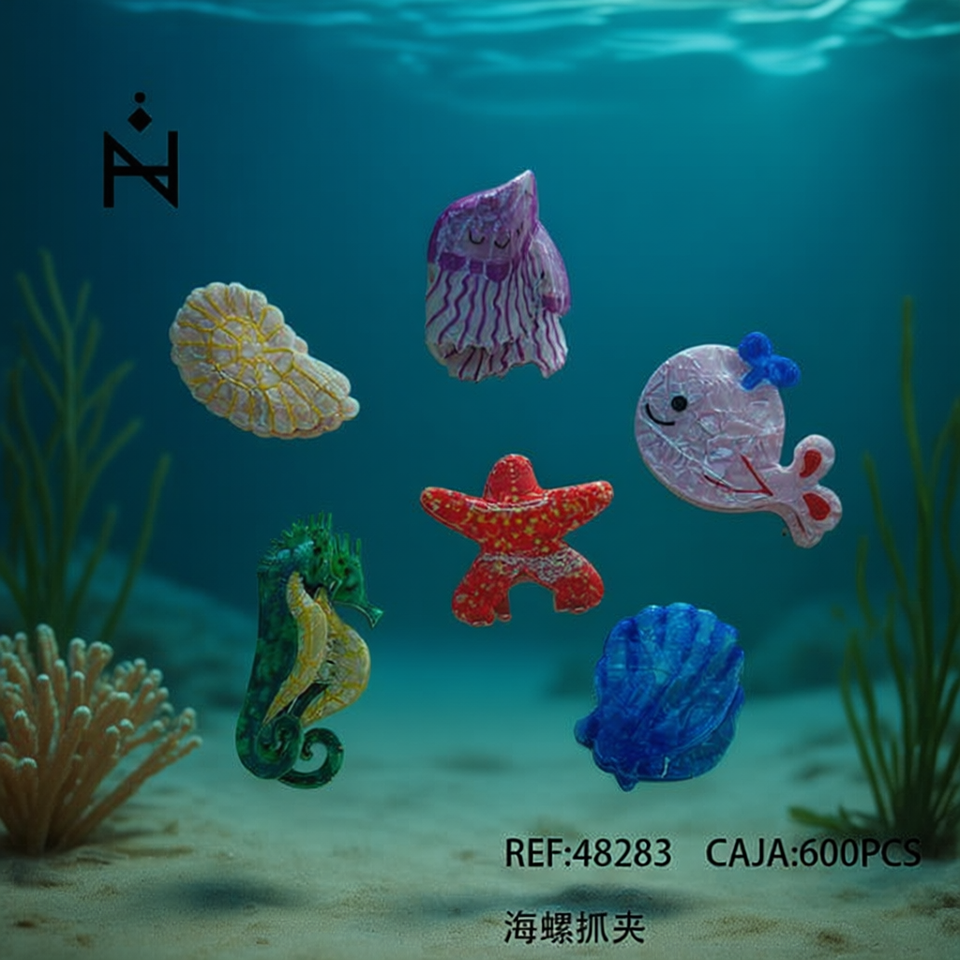 Fermagli per capelli a forma di conchiglia N, 6 cm, in resina, design a tema marino, stile cartone animato, da donna, casual, in busta OPP