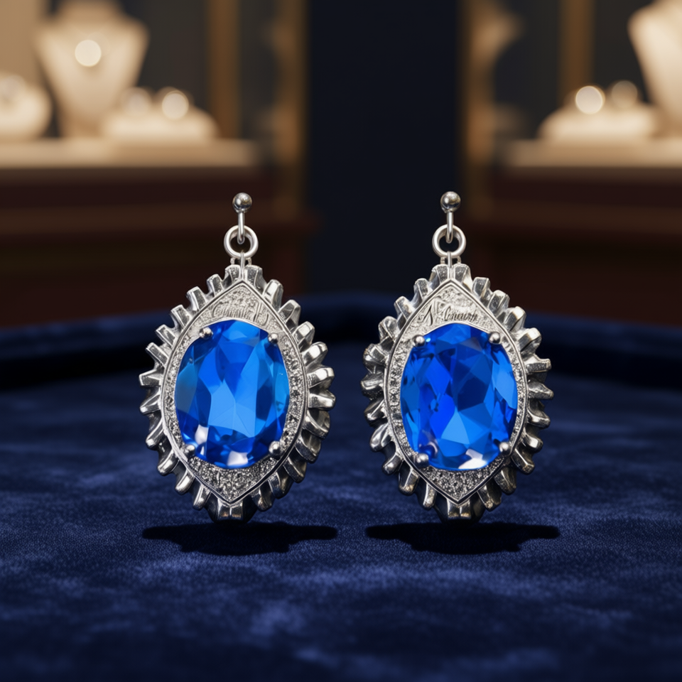 N. Cresson Blue Crystal Drop Earrings 925 Silver Rhodium Plated Oval Women's Party Jewelry