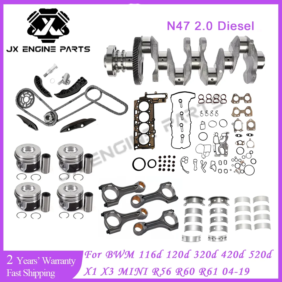 Kit di Ricostruzione Motore N47 con Catena di Distribuzione, Cuscinetti Albero Motore e Biella, Set Guarnizioni per BMW MINI 2.0 116d 418d 520d X1 X3 X5 2.0L