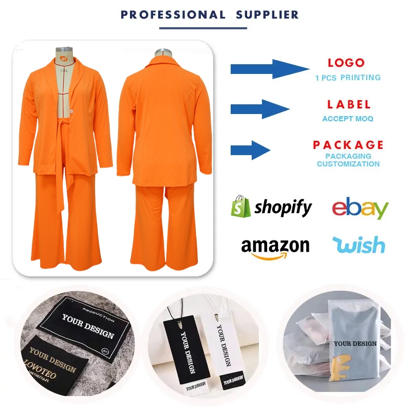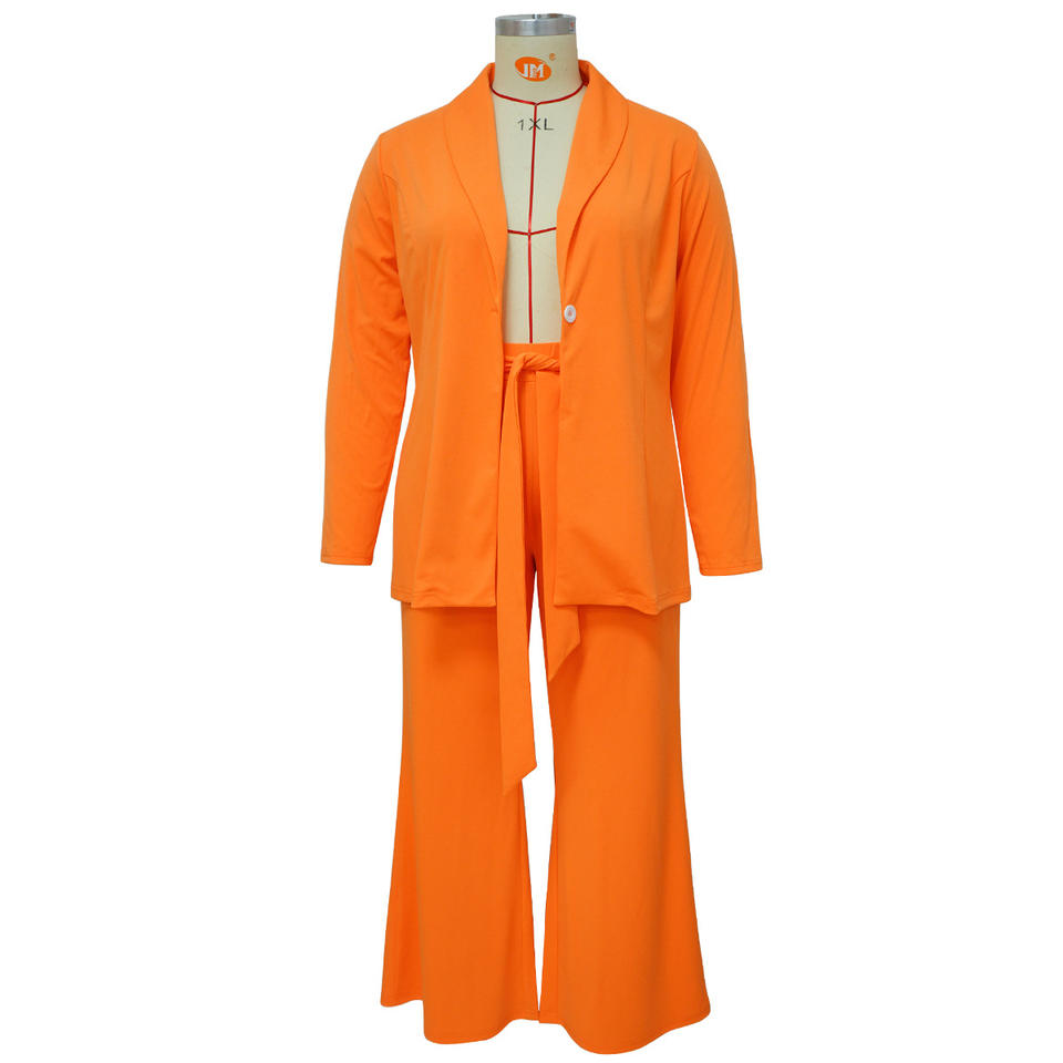 N7904 Plus Size Women's Clothing Ladies Office Wear Outfits Long Sleeve Blazer and Tie up Pants Suits Set for Women