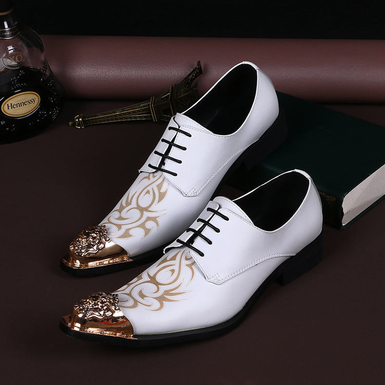NA045 scarpe da uomo con stampa di moda scarpe eleganti in vera pelle bianca con punta a punta in metallo scarpe da festa d'affari taglie forti