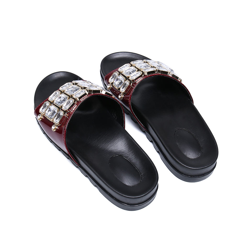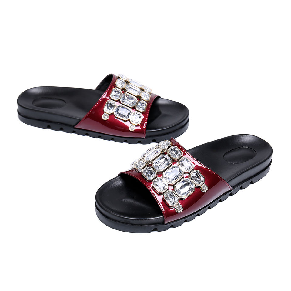 NA214 Pantofole in Pelle Fatte a Mano per Uomo, Sandali con Cristalli, Ciabatte con Strass, Scarpe da Giardino Taglia Grande
