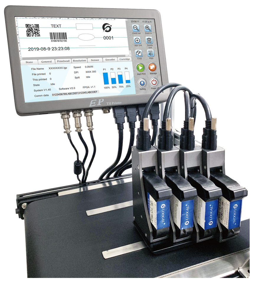 Stampante a Getto d'Inchiostro NASCENCE EP con 4 Testine di Stampa, Tecnologia TIJ per Codici GS1UDI, Imballaggi in Cartone, 220V, Grado Automatico, Garanzia di 1 Anno