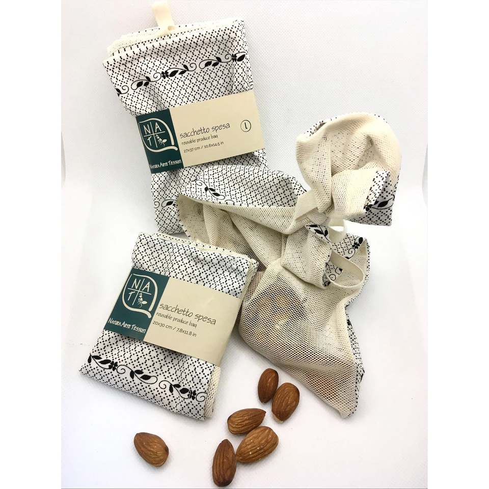 NAT Cotton Shopping Bag 30-50cm Drawstring Closure Groceries Use