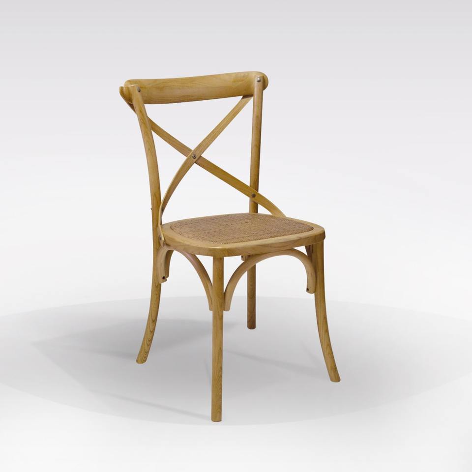 NATURAL WOOD CHAIR WITH RATTAN BASE