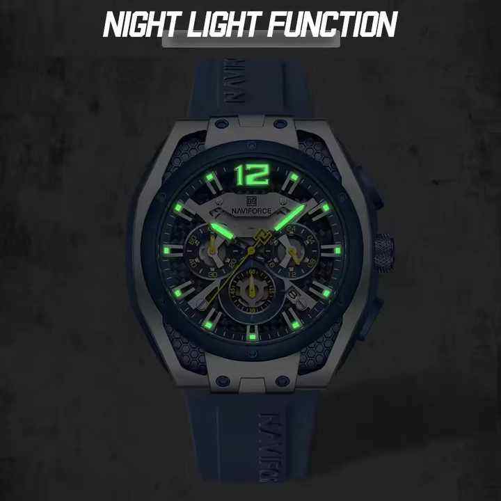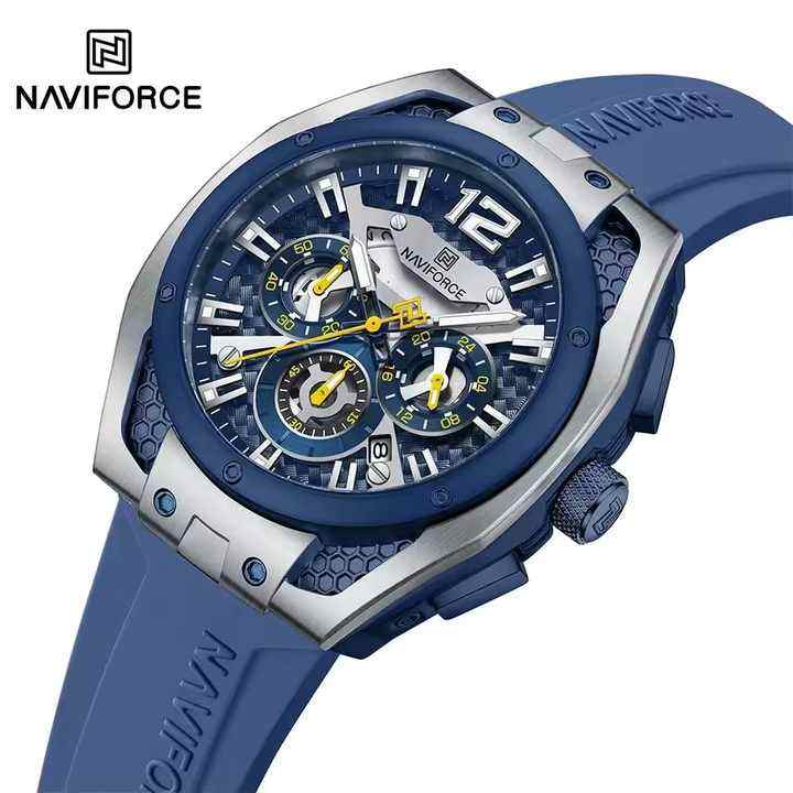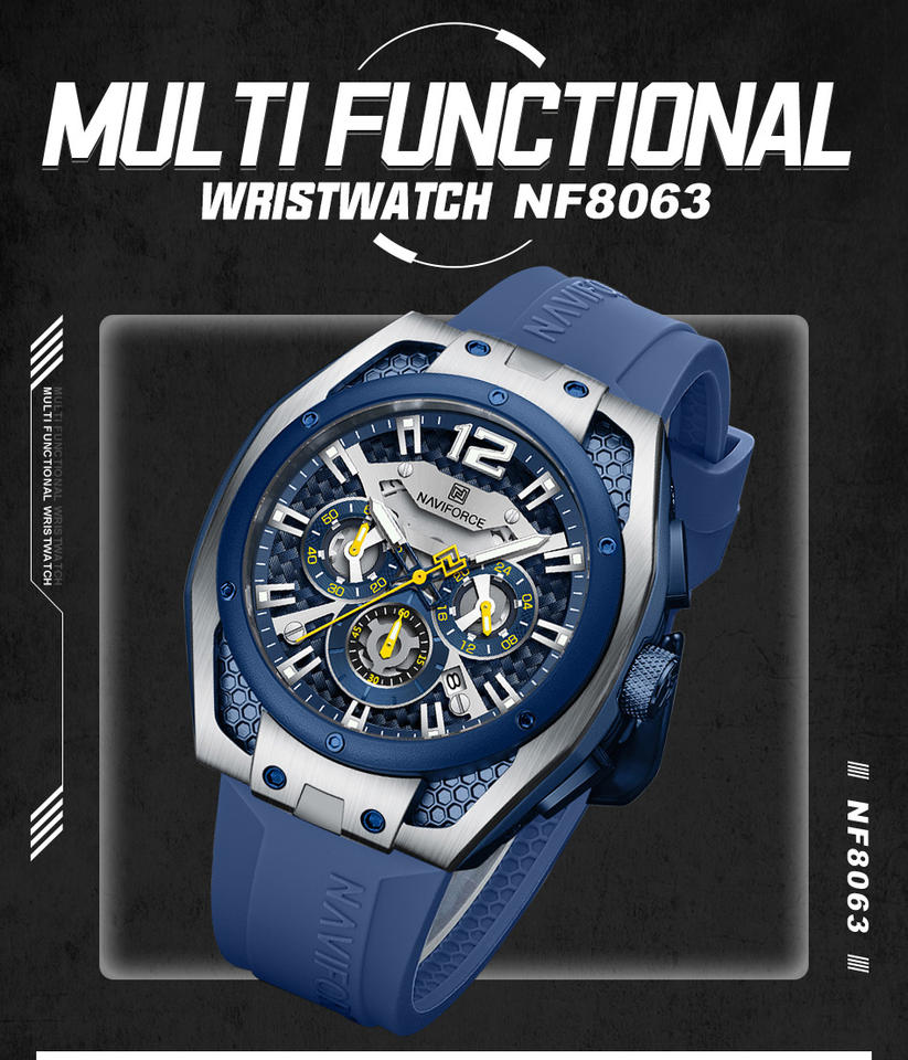 NAVIFORCE 8063 Men Watch Fashion Sport Wristwatch Quartz Chronograph Luxury Chronograph Silicone Strap Quartz Male Clock Gift