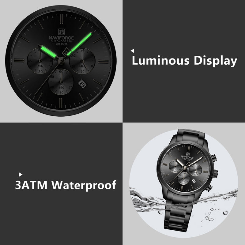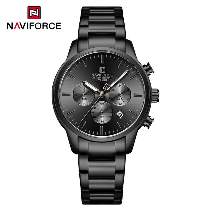 NAVIFORCE 8076 Black 42 mm Dial Stainless Steel Watches Chronograph Men's Watch Private Label Watch Manufacture in China Trade