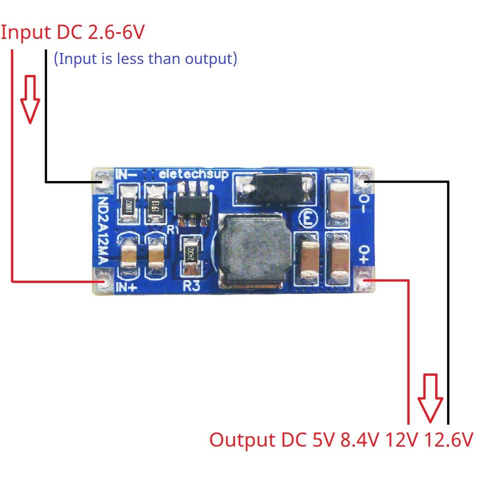 Convertitore DC-DC ND2A12MA da 4.2V 8.4V 12.6V (1 cella) a 2-3 celle, Doppia Tensione Batteria, Booster da 3.3V 3.7V 4.2V a 5V 8.4V 12V 12.6V