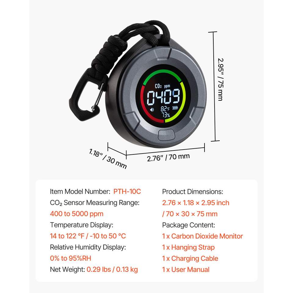 Sensore NDIR per il monitoraggio dell'ossido di carbonio, regolatore CO2 con display di temperatura e umidità, monitor della qualità dell'aria per casa, ufficio e ambienti esterni