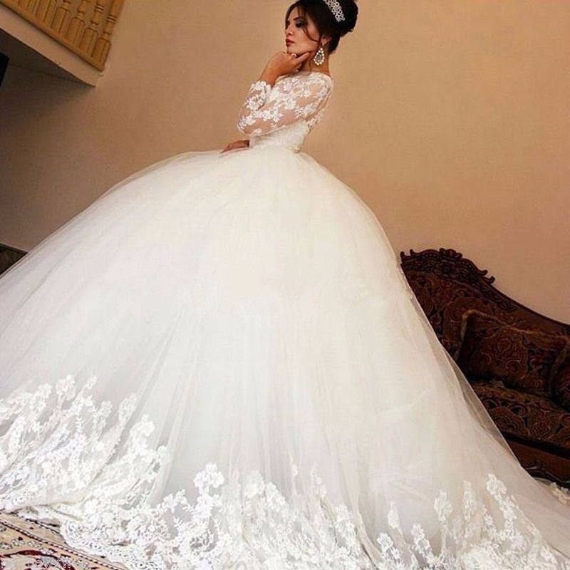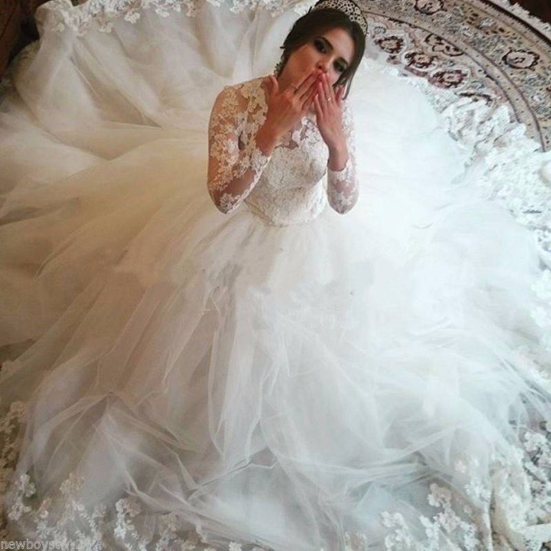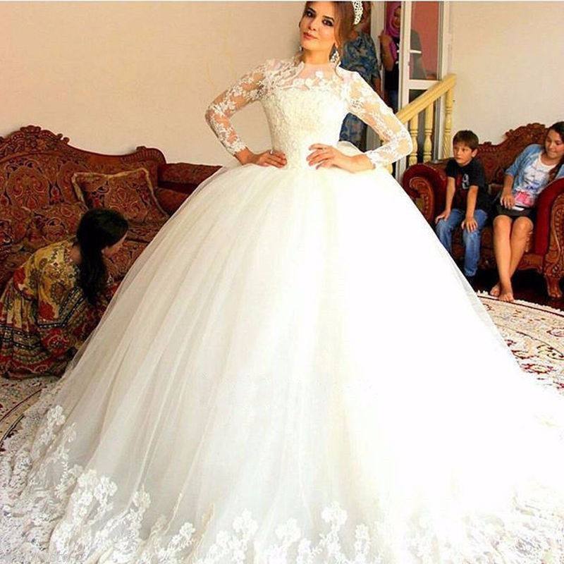 NE081 Abito da Sposa Musulmano Vintage con Collo Alto in Pizzo, Maniche Lunghe, Vestido De Noiva Romantico in Tulle, Abito da Sposa a Palloncino