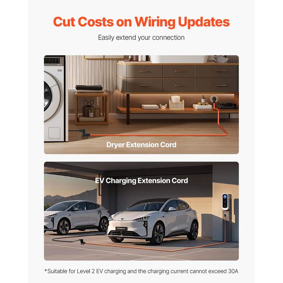 Cavo per asciugatrice NEMA 14-30P/14-30R, 25 piedi, 125V/250V, 4 poli, STW 10AWG/4C, 30A, cavo in rame puro, prolunga per asciugatrice a 4 poli
