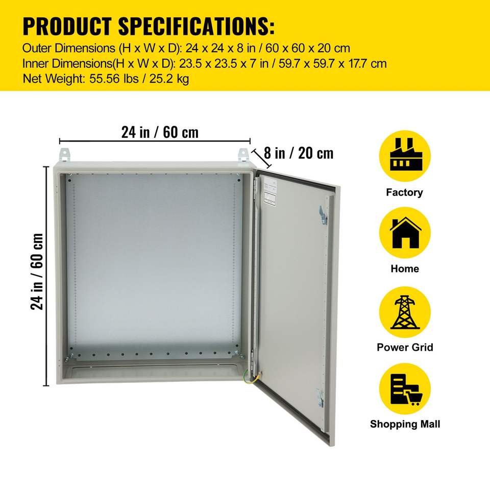 Armadio Elettrico NEMA 4 per Esterni Impermeabile e Antipolvere 60x60x20 cm in Acciaio al Carbonio Laminato a Freddo IP65