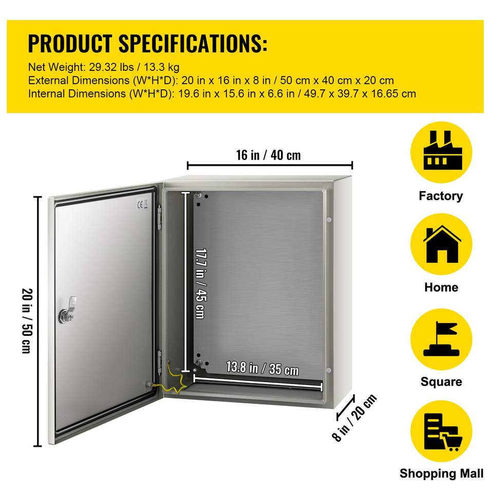 Contenitore Elettrico in Metallo NEMA 4X 20x16x8, Cassa in Acciaio IP66 Resistente ad Acqua e Polvere per Uso Esterno e Interno, per Strumenti Elettronici
