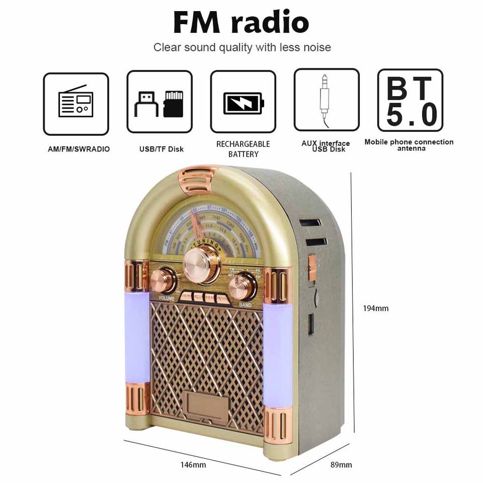 Nuovo Design Vintage Clock Radio FM/AM/SW 3 band Retro Radio USB/TF Music Player lettore MP3 per regalo