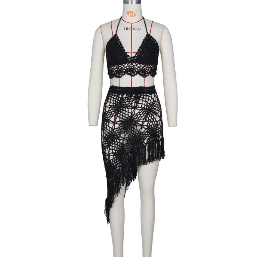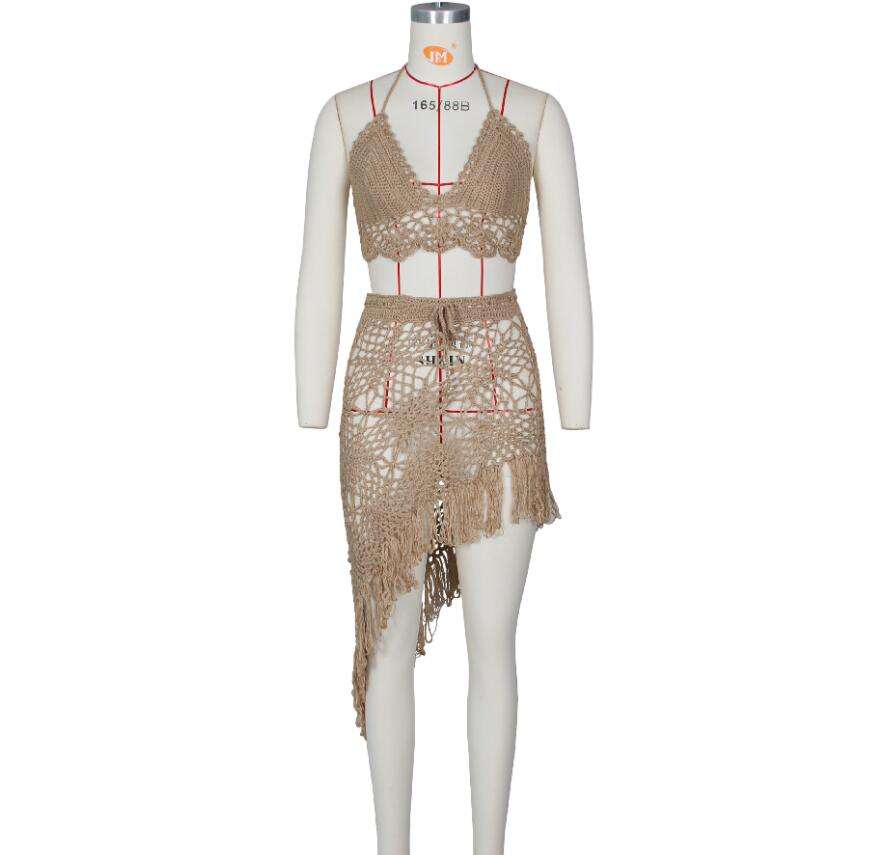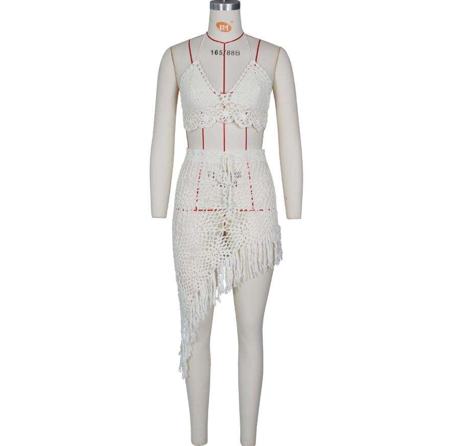 NEW STOCK Crochet Skirt Fringe Two Pieces Beachwear Cotton Dress
